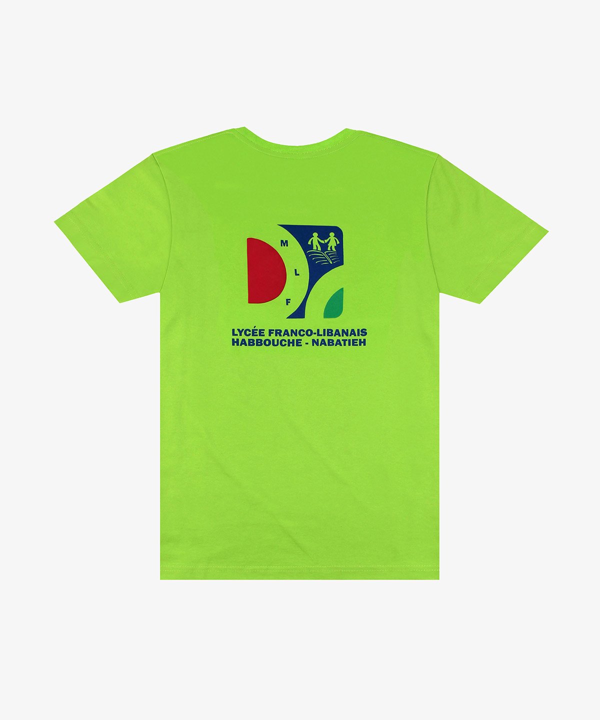 Ready made heavy cotton t-shirts in different colors screen printed on front chest and back for a Spanish NGO operating in Lebanon.