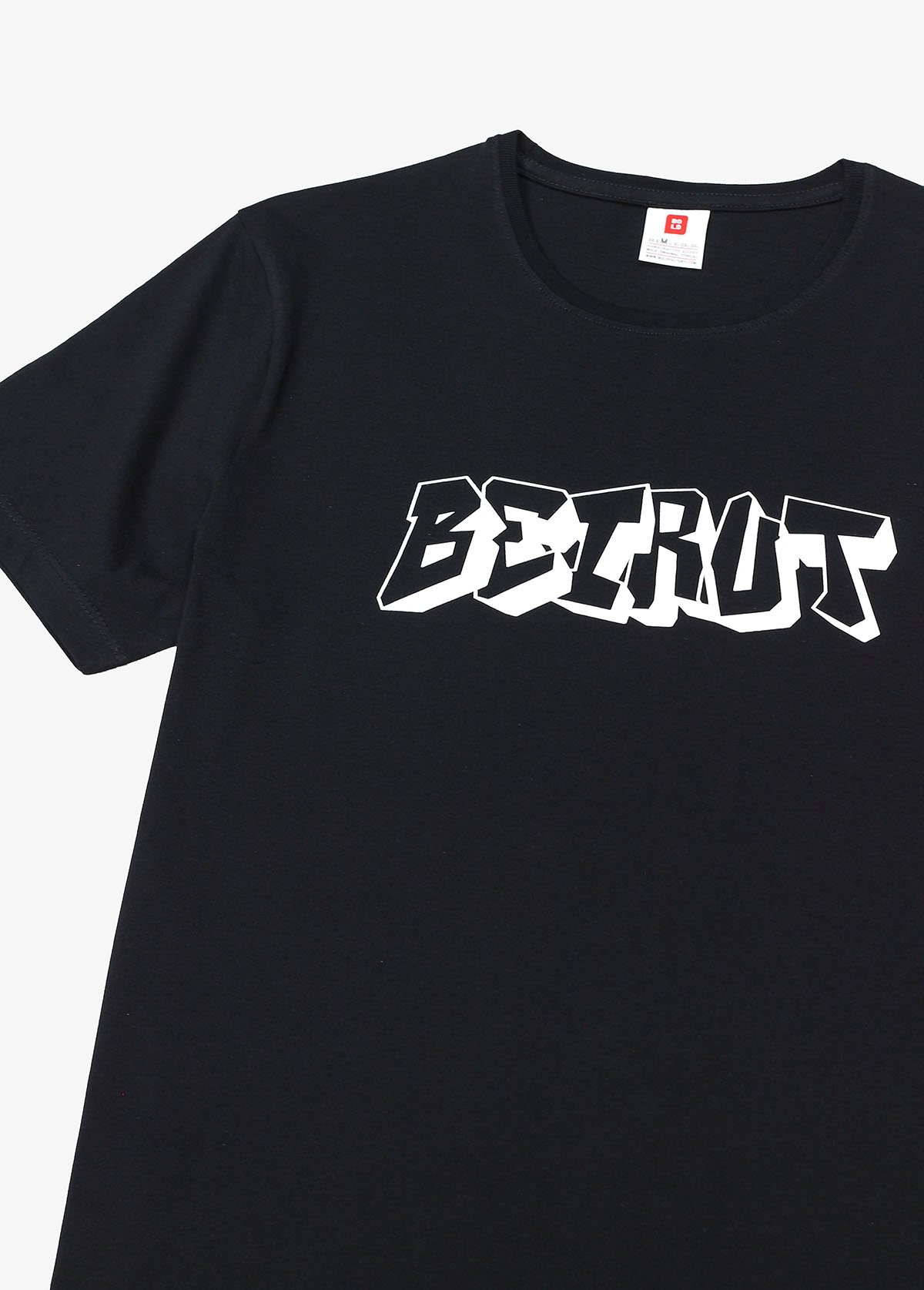 Ready made premium cotton t-shirt in black color screen printed in a special technique to provide for a soft opaque white color print.